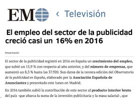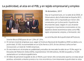 El pasado 18 de diciembre la aea presentó, en la sede de la CEOE, el Observatorio de la Publicidad en España 2017 cuyos principales datos son muy positivos en los aspectos claves de la economía tales como PIB, tejido empresarial, empleo, o formación.