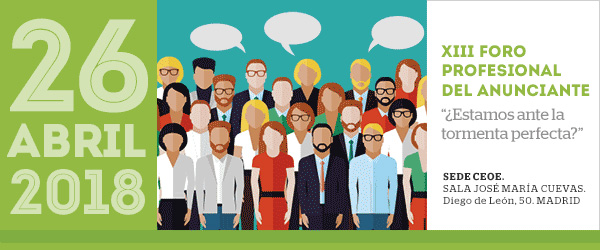 | El próximo jueves 26 de abril, en nuestro Foro Profesional del Anunciante, Marcos de Quinto, Pablo Alzugaray y Javier Rodríguez Zapatero intervendrán en ¿Estamos ante la tormenta perfecta? |