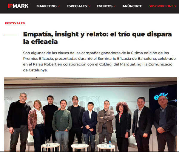 Tanto la revista Control como IpMark publican sendas actividades de los Premios Eficacia: el arranque del Programa Eficacia Universidades (PEU) así como el Seminario celebrado en Barcelona. |